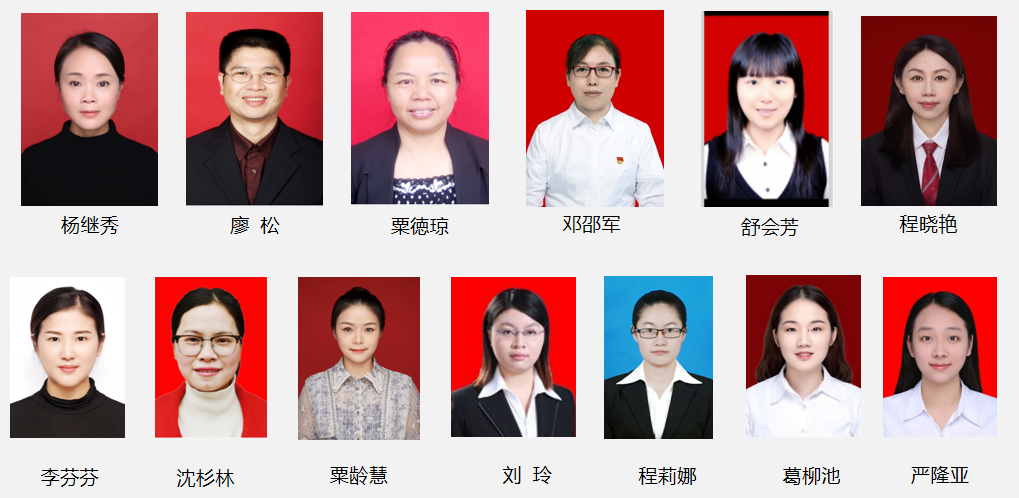 核心成员:葛柳池、杨继秀、廖松、粟徳琼、舒会芳、邓邵军、程晓艳、粟龄慧、李芬芬、沈杉林、刘玲、程莉娜、严隆亚等。