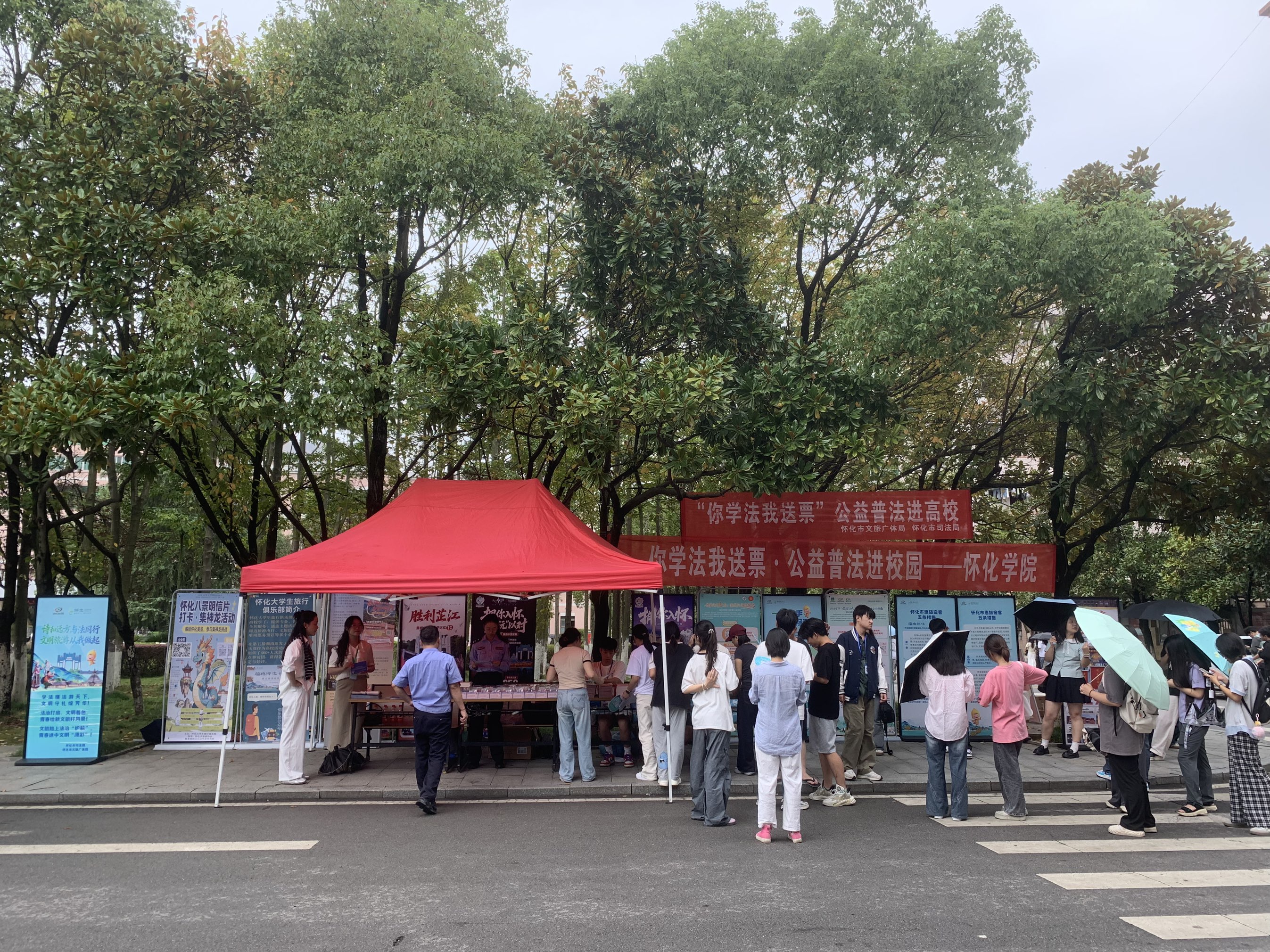 2025年9月29日,怀化大学生旅行俱乐部受邀参加由怀化市文化旅游广电体育局在怀化学院举办的“你学法我送票”公益普法活动。作为怀化旅游行业在高校的特色项目代表,俱乐部全程参与并积极响应。