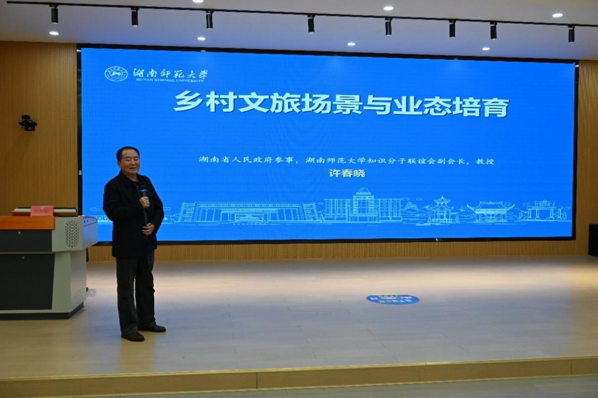 随后,许春晓教授围绕主题展开分享,不仅分析了文旅技能型人才的供需市场趋势,还结合行业发展痛点剖析了人才培养面临的未来挑战,同时提出了针对性的应对理念与实践方向;他还延伸分享了“乡村文旅场景与业态培育”的相关内容,为在场教师提供了多元的行业视角。
