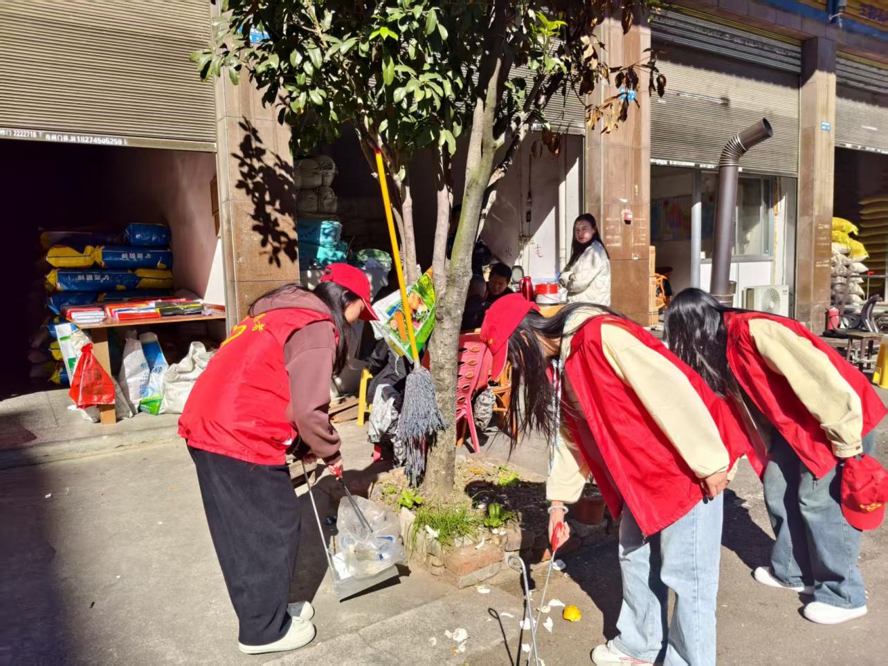 (商贸旅游学院新闻通讯站)为全面推进“志愿服务进社区”,巩固教育实践活动成果,引导大学生在志愿服务中绽放青春风采。2025年11月21日下午,怀化职业技术学院商贸旅游学院青年志愿者协会组织20名志愿者,前往金穗社区隆平国际粮油市场开展卫生大扫除志愿服务活动,不仅用行动实践雷锋精神了,更体现了亲年学子在志愿服务上的心系社会,爱与关怀的当代精神。